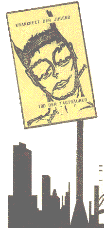 KRANKHEIT DER JUGEND – Tod Der Tagtraumer Eins/Zwei, Drei (Cassette – Krankekunstrverlag) A collection of tracks taken from various live performances from this agit-art rock band from Germany. Mixing experimental elements along with post-punk with a dash of fellow countrymen DAT and Neubauten. Spoken word ambiences are counterbalanced with full on pieces, which gives this band such depth. Live, they have great control and power retaining subtleties that most bands lose. The words are all important. This band has a message to accompany their thought provoking music. Contact: KRANKHEIT DER JUGEND, Haupstr.75, 74206 BAD WIMPFEN, GERMANY DAY RELEASE RECORDS After being disillusioned with major labels the band DELICATE AWOL logically decided to set up their own – a lot’s happened in a year. The aim of the label is to release the best alternative music, but not relying on a house style, so artists on this label are eclectic in style but have a common uniqueness of vision. The artist in control? Quite an idealistic manifesto … DAY RELEASE SAMPLER Features the current roster of artists including DELICATE AWOL (up-beat Curve/Massive Attack meets quirky jazz), DAVID HURN (Singer/ songwriter with mellow acoustic guitar number), FAIRYS (Offbeat psychedelic tinged band), 40 SHADES OF BLACK (Instrumental progressive/ experimental rock) NAZGUL – Habitually/Plujectories (Single-Day Release) German experimental ensembles who first recorded their improvised music back in 1975. They recorded two albums for the legendary Pyramid label and remained unnoticed until Virgin compiled ‘Unknown Dautschland’ – Krautrock Archive, recently. Since then, a full album has been released via Psi-Fi and of course this single. Think of bands like Faust and that whole scene and you’ll get close to their minimal ambient experimentation’s. The even used similar recording techniques to re-create their original sound. Contact: DAY RELEASE, 8 Moat Place, LONDON, SW9 OTA, e-mail: Website: www.themoat.deamon.co.uk |